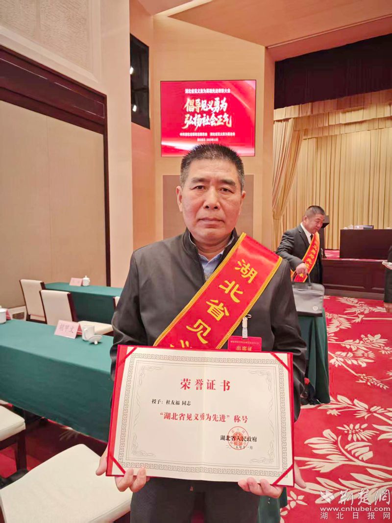 荆楚网(湖北日报网)讯(通讯员施杰)近日公布了湖北省见义勇为优秀个人名单。红安县米尔斯镇良亭村村民杜友福荣获省级优秀见义勇为个人称号。他在关键时刻挺身而出保护生命,每天都在践行着帮助他人的初心。这位英雄的凡人英雄,用他的善行展现了他的责任。今天我们来到他身边,聆听他的感人故事。初见杜友甫时,他举止谦逊,言语简单。他失去了荣誉光环,只是乡村里的一个普通村民。记得关键时刻他挺身而出的时候,眼神里充满了坚毅,他不顾安危的勇气令人感动。杜友福说:“此时收到省里颁发的获奖证书,我真的很感动、很惊讶。”2023年1月26日下午,红安县米尔斯镇凉亭村杨家田湾一村民家二楼起火,杜有福闻讯赶来,提着水桶爬上木梯到二楼灭火,冒着生命危险,成功救出全部八人。此后,他继续救火,但由于体力不支,从木梯上摔下来,导致尾椎骨骨折,导致他伤残。杜友甫稍稍康复后,就成了一名小学保安,继续在平凡的岗位上守护着自己最初的愿望。我专注于扑灭火焰和救人。我们村里这样的事情还有很多。任何人看到它都会这样做。” 无畏的决定危机时刻的离子制造来自于日常生活中善意的积累。在社区里,杜友夫在日常生活中努力助人为乐,帮助邻居。他的义举不仅温暖了被救的家人,也被大家看到、铭记在心。红安县米尔斯镇良亭社区党总支书记张震说:“杜友福在村里总体很热心,遇到有需要的家庭,他都会主动出击。他义无反顾的救援,保护了很多家庭的完整。被救群众的家属始终感谢杜友福的义举。被救群众家属杜光耀说:“如果不是杜友福当时如此绝望,火灾早就发生了。难以控制,造成的损失会更大。作为被救群众的近亲,我对杜友福的勇敢精神表示衷心的感谢。”获得省里的荣誉,杜友甫并没有感到自豪,而是多了一份传递善意的责任。他表示,这份荣誉既是认可,也是动力。未来,他将坚守初心,继续做好帮助他人的善事。杜友福说:“我这次收到这张证书,我想这是对我的肯定,也是对所有勇敢者的鼓励。以后遇到这样的事情,我也不会辞职去帮忙。”没有什么惊天动地的誓言,只有在危机时刻才坚守;没有刻意的表现,只有日常生活中善意的坚持。杜友甫在人们平凡的善行上点燃了温暖的光芒,帮助见义勇为的精神在红安这片红色沃土上生根发芽,为荆楚大地带来向上的力量。